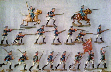 Soldater, hästar mm i tenn.