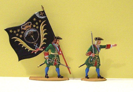 Rysk officer och fanförare ur Preobraschenski, 1712. 30-mm.