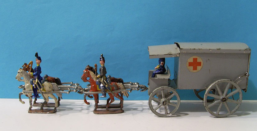 Hästanspänd ambulans. Vagnen tillverkades